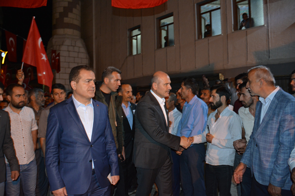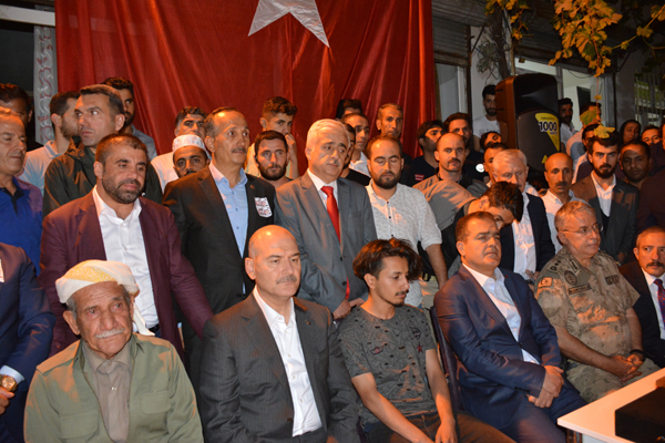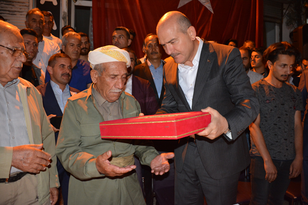 Bakan Soylu, bu köylerin kahraman olduğunu belirterek, "Milim birliğimizden ve beraberliğimizden taviz vermediniz. Milim bu ülkeye sadakatinizden, bu milletin birliğinden sapmadınız. Büyük kayıplar verdiniz. Büyük mücadele ettiniz. Ama şunu ifade edeyim ki; bugün eğer bu bölgelerde huzur ve sükun varsa, gecenin bir yerinden bir yerine rahat gidilebiliyorsa, bu sizin basiretinizin sayesindedir. Kahraman güvenlik güçlerimizin ortaya koymuş olduğu güçlü irade sayesindedir. Sayın Cumhurbaşkanı'mızın sarsılmaz iradesi sayesindedir. Şehitlerimiz, şehitler tepesindeki yerlerini aldı. Biliyoruz ki; onlar şu an aramızdadırlar ve diridirler. Onları görmüyoruz. Onlar inşallah Cenab-ı Allah'ın cemali ile buluşacak. Ve onlar en güzel yerlerde, peygamber efendimize komşu olacak İnancımız budur" diye konuştu.