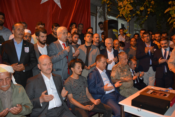 Bu acıları geçmişte çok yaşadıklarını belirten Bakan Soylu, "Bu coğrafya, kolay bir coğrafya değil; hepimiz biliyoruz. Bu coğrafyadaki en büyük nimetimiz; inacımızın ve dinimizin emanet ettiği tevhit ve birliktir. Allah'a hamdolsun, şu toplulukta şehidi olmayanın sayısı azdır. Allah hamdolsun aynı devletin, aynı bayrağın, aynı milletin mensupları olmak; o şehitlerimiz sayesinde bugün hepimiz ezanımızı, bayrağımızı, birlikteliğimizi ve çoluk çocuğumuzun umutlarını geleceğe taşıyoruz. Peki, bunu kime borçluyuz? Kahramanlarımıza borçluyuz" dedi.