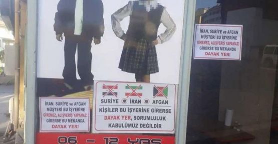 Denizli’nin Merkezefendi ilçesinde yaşayan esnaf, vitrinine İran, Afgan ve Suriye uyruklu müşterilere yönelik olarak “İran, Suriye, Afgan müşteri bu dükkana giremez, alışveriş yapamaz, girerse bu mekanda dayak yer” yazısı astı.