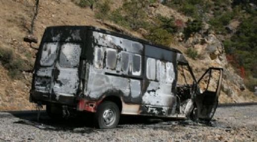 Karakola inşaat malzemesi taşıyan minibüs ateşe verildi