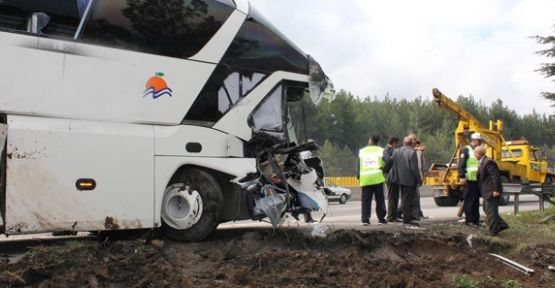 Kazada otobüste bulunan 22 kişi yaralandı. Yaralılar olay yerine gelen ambulanslarla çevre hastanelere götürüldü. Yaralılardan 3'ünün durumunun ağır olduğu belirtildi. / dha