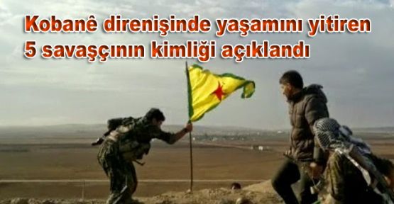 Yazılı bir açıklama yapan YPG Basın Merkezi, Kobanê direnişinde yaşamını yitiren YPJ ve YPG 5 savaşçının kimliğini açıkladı. Açıklamada bu beş savaşçının her birinin çetelerin yüreğine büyük korku saldıkları ve tarihi birer kahramanlık ve direniş destanına dönüştükleri belirtildi.