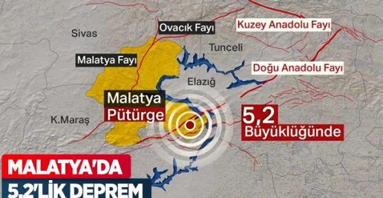 AFAD alınan verilere göre, saat 12.37'de merkez üssü Malatya'nın Pütürge ilçesi olan 5.2 büyüklüğünde deprem meydana geldi. Derinliği 7.02 kilometre olarak ölçülen sarsıntıya ilişkin yapılan açıklamada, "Malatya'nın Pütürge ilçesinde saat 12.37'de 5.2 büyüklüğünde bir deprem meydana geldi" denildi.