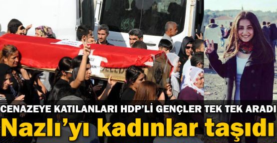 Cenazelerin toprağa verilmesi sırasında mezarlığa gelmek isteyenler HDP'li gençler tarafından tek tek aranırken, Nazlı Akyürek'in tabutunu siyah elbiseler giymiş kadınlar taşıdı.