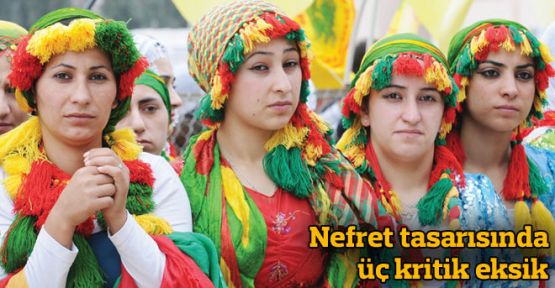 Birçok Avrupa ülkesindeki tanımından farklı olarak ‘cinsel yönelim’, ‘etnik kimlik’ ve ‘uyruk’ nedeniyle işlenen suçlar, Türkiye’de ‘nefret suçu’ sayılmayacak. Tasarıda kişinin milliyetine yönelik işlenen suçlar nefret suçu sayılıyor. Ancak Birleşmiş Milletler’e üye bir devletleri olmadığı için ‘millet’ olarak kabul edilmeyen etnik kimliklere yönelik hakaretler, normal suç sayılmış oldu. Örneğin Ermeniler millet sayıldığı için bu yönde işlenen suçlar ‘nefret’ kapsamında olacak. Ancak ‘Kürtler’ için bu yöndeki suçlarda normal cezalar işletilecek.
