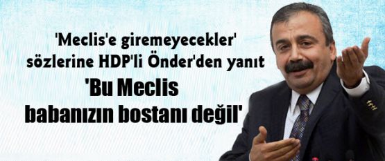 HDP Milletvekili Sırrı Süreyya Önder, Başbakan Ahmet Davutoğlu’nun, Meclis ve Komisyon’da yaşanan saldırı ve kavgaların ardından HDP’liler için sarf ettiği “Meclis’in kapısının önünden geçemeyecekler” sözlerine yanıt verdi. Önder, “Meclis’in kapısından geçmemesi gereken birileri varsa eğer, o da bu Meclis’i babasının bostanı zanneden zihniyettir” dedi.