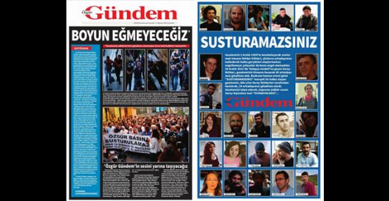 Mahkeme kararıyla kapatılan, binası basılan, çalışanları gözaltına alındıktan sonra binası mühürlenen Özgür Gündem Gazetesi, “Boyun eğmeyeceğiz” manşeti ile çıktı.