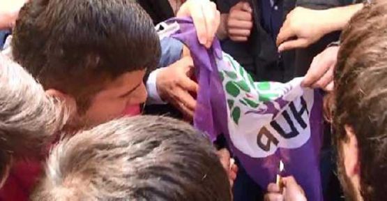 İddiaya göre; yürüyüş sırasında HDP’nin seçim bürosu önünden geçen grup sloganlar attı, HDP seçim bürosunda bulunanlar da sloganlara karşılık verdi. Bunun üzerine HDP bürosuna girmek isteyen grupla polis arasında kısa süreli arbede çıktı. Gruptakiler HDP bayraklarını yere attı, ateşe verdi.
