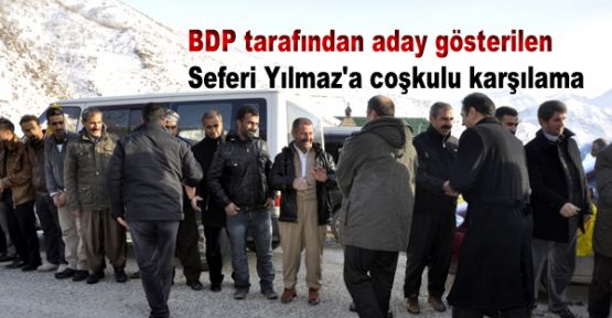 BDP Eş Genel Başkanı Selahattin Demirtaş’ın serhat bölgesi belediye başkanlarının açıklamasıyla Şemdinli belediye başkan adayı gösterilen Seferi Yılmaz bugün Şemdinli STK temsilcileri ile ilçe halkı tarafından coşkulu bir şekilde karşılandı.