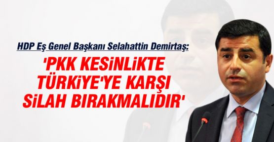 Demirtaş, koalisyon tartışmalarına ilişkin konuşarak “PKK’yi tehdit olmaktan çıkarmanın yolu müzakeredir. Bizim çağrımıza kalmış olsa sabah kalkar akşama kadar çağrı yaparım. Çağrıyla olacak iş değil. Buradan çağrı yapıyorum PKK kesinlikle Türkiye’ye karşı silah bırakmalıdır. Ama benim çağrım çözüm değil ki… Kim yaparsa bırakacak, Öcalan.” dedi.