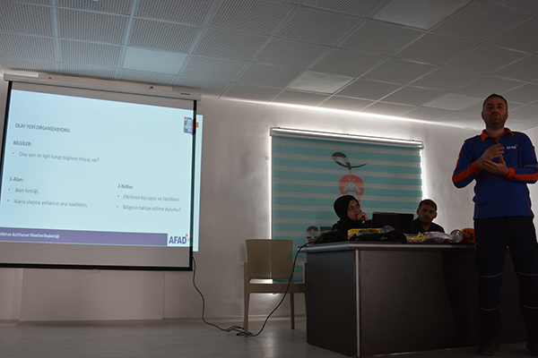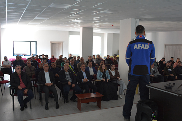 Belediye konferans salonunda düzenlenen eğitimde, afetlerden önce alınması gereken tedbirler, afet anında yapılması gereken doğru davranış hareketleri ve afet sonrası için yapılması gereken planlamalar detaylı bir şekilde ele alınırken, afetlerden zarar almadan veya en az zararla kurtulabilmek için bu anlamda alınacak tedbirlerin önemine vurgu yapıldı.