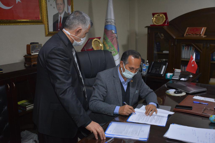 Belediye İş Sendikası yetkilileri ve belediye şirketi çalışanlarıyla bir araya gelen ve sözleşmeye imza atan Belediye Başkanı Tahir Saklı, "Belediye İş Sendikası ve belediyemiz arasında 2021 yılında çalışanlarımıza ödenecek ücretler ve sağlanacak sosyal ve mali hakları içeren toplu iş sözleşmesini imzaladık. Gecesini gündüzüne katarak büyük bir eforla çalışan emekçilerimizin enflasyondan zarar görmelerini önlemek ve emeklerinin karşılığını almalarını temin etmek amacıyla imzaladığımız sözleşme; mali, sosyal haklar ve ücret iyileştirmelerini içeriyor. Tüm çalışanlarımıza hayırlı uğurlu olmasını diliyorum. Onların mutluluğu her şeyden önemli" dedi.