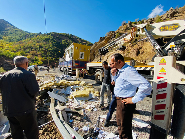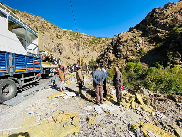 Alınan bilgiye göre kaza, bugün sabah 07.15 sıralarında Şemdinli ilçesinin Durak köyü yakınlarında meydana geldi. Seyir halinde olan Hafız Yoğurtcu yönetimindeki tır bariyerlere çarparak kaza yaptı.