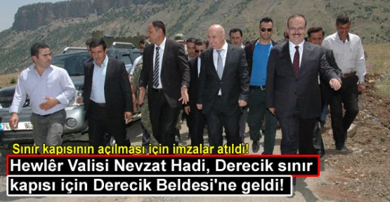 Şemdinli İlçesi’nin Irak sınırının sıfır noktasında bulunan Derecik sınır kapısı için Irak’ın Erbil Valisi Nevzat Hadi ile Hakkari Valisi Yakup Canbolat, Derecik Beldesi’nde bir araya gelerek sınır kapısının açılması için protokolleri imzaladı. İmza töreni için Irak’ın Erbil Valisi Nevzat Hadi, Soron Kaymakamı Huşevi Nebi, Soran güvenlik yetkilileri, öğle saatlerinde Derecik Beldesi’nin Yeşilova Köyü’ne geldi. Erbil Valisi Hadi ile beraberinde bulunan yetkilileri Derecik Beldesi Belediye Başkanı Ekrem Çetinkaya ile belde sakinleri karşıladı. Buradan Derecik Beldesi’ne geçen Vali Hadi ve beraberindekiler, sınır kapısının olduğu bölgede de Hakkari Valisi Yakup Canbolat ve Şemdinli Kamakamı Adem Ünal ile bir araya geldi.