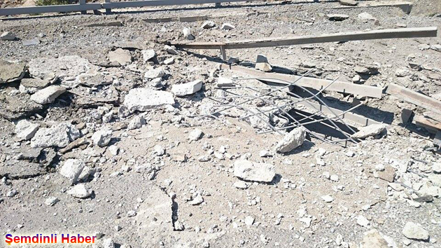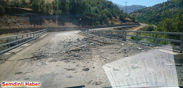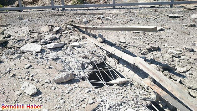Bombalı eylem sonucunda hasar gören köprü tek şerit olarak ulaşım sağlıyor.