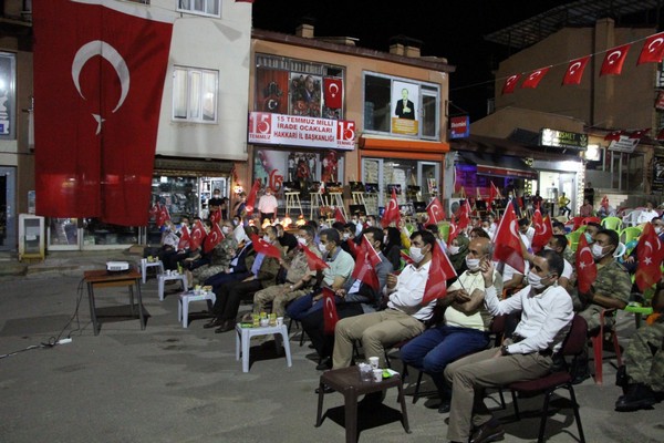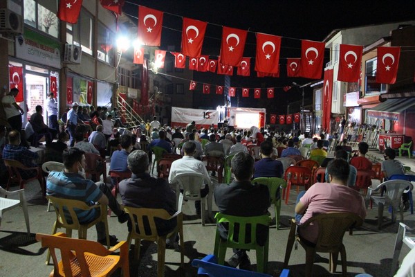 Etkinlik, akşam Şemdinli Belediye bünyesindeki Kültür Merkezi bahçesinde de devam etti. Belediye Başkanı Tahir Saklı’nın açılış konuşmasıyla başlayan etkinlikte İlçe Kaymakamı Yakup Güven’de kısa bir konuşma yaptı. Kaymakam Güven ve Başkan Saklı, 15 Temmuz’un önemine vurdu yaptı. Sinevizyon gösterisi, Cumhurbaşkanı Erdoğan’ın canlı olarak yayınlanan halka seslenişi, şiir dinletisi, müzik ziyafeti ile devam eden etkinlik, saat 00.13’te yurtta ve ilçede eş zamanlı sala okunmasıyla son buldu.