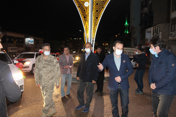 Kaymakam Güven ve beraberinde bulunanlar Türk bayraklarıyla süsledikleri araçlarıyla kent merkezi ve mahalleleri gezerek 23 Nisan şarkısı çaldı.