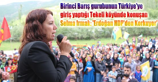 Cumhurbaşkanı R.Tayyip Erdoğan’ın HDP’den korktuğunu ifade eden Hakkari Milletvekili Selma Irmak; “ Cumhurbaşkanı Erdoğan HDP’den korkuyor. HDP’nin baraj aşmasından da korkuyor. Neden? Çünkü, Erdoğan’ın İran’a uçak dolusu gönderdiği altınları ortaya çıkacak. Çünkü kaçak olarak inşa ettiği Saray’ın hesabı sorulacak. Sokaklarda öldürülen çocukların hesabını soracaklar. Korkması bundandır. Bu nedenle elinden geldiği her şey yapacak. O hırsızlıkta yapacak, provokasyonlar da yapacak. Hatta seçimlerin iptal edilmesi içinde elinden gelenini yapacak” dedi.