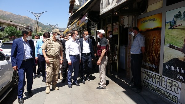 Toplantının ardından Şemdinli Kaymakamı Yakup Güven, Belediye Başkanı Tahir Saklı, İlçe Jandarma Komutanı Binbaşı Erdoğan Carık'ın katılımıyla ilçe merkezinde maske, mesafe ve temizlik konularında denetimler yapıldı.