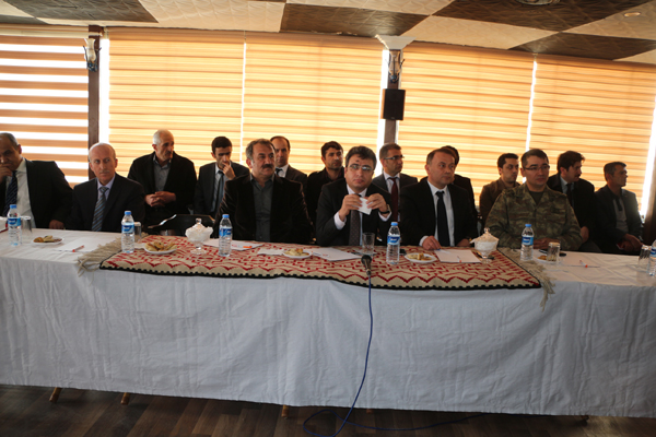 Şemdinli’de özel bir Cafede düzenlenen toplantıya Şemdinli Kaymakamı Murat Öztürk, Şemdinli Belediyesi Eş Başkanı Seferi Yılmaz, kurum amirleri, askeri yetkililer, STK temsilcileri, ilçe esnafı ve halk katıldı.
