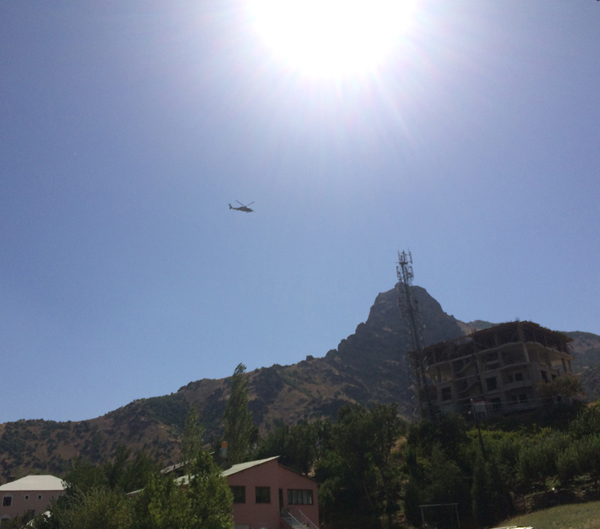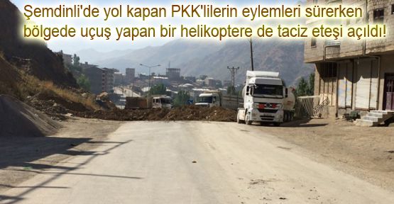 Şemdinli - Yüksekova karayolunu Şemdinli şehir girişinde bulunan Şemdinli Küçük Sanayi Sitesi yakında ulaşıma kapatarak iş makineleriyle hendek kazan PKK'lilerin yol kapatma eylemi sürüyor. Bölgede kimlik kontrolü yapan PKK'liler Şemdinli'den Yüksekova yönüne giden Skorsky tipi askeri helikoptere uzun namlulu silahlarla taciz ateşinde bulundu.