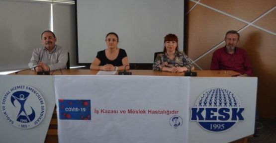 “SGK Genelgesi ile İş Kazası ve Meslek Hastalığı Kayıtlarının Engellenmesi Tüm Emekçilere Saldırıdır, İzin Vermeyeceğiz” başlığıyla yapılan açıklamada, “ Korona virüsü salgını döneminde izlenen sağlık politikalarını, salgınla mücadele yönetimini ve önlemler alınmadan zorla çalıştırılan ve bunun sonucunda hastalanan 10 binlerce sağlık emekçisini, yine zorunlu mal ve hizmet dışındaki üretime ara verilmeden, koruma önlemleri alınmadan zorla çalıştırılarak hayatları riske atılan ve hastalanan işçileri, bu tercihler sonucu yaşanan ölümleri konuşuyoruz” denildi.