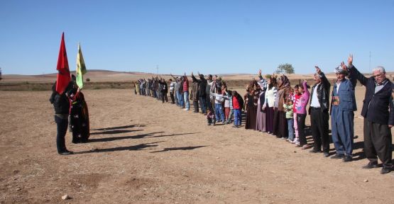 Suruç-Kobanê sınır hattında DAİŞ çetelerinin Kobanê'ye dönük saldırılarına karşı başlatılan direniş nöbetindekiler, insan zinciri oluşturdu.