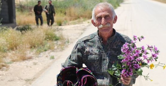 Biz, acaba şu havan topunun etkisiyle kaç kişi yaşamını yitirdi, şu oyuncak bebek hangi çocuğundu, diye bakınırken, yanımıza yaklaşıyor Karker Heval. Merhabamıza "dem baş" diyerek karşılık veriyor. "Burada ne yapıyorsunuz" diyorum, o da "Ez tevle YPG'e bume" diyor ve gülerek anlatmaya başlıyor: Adım Karker Kobani, 60 yaşımdayım, Sinopluyum yani Diyojen’in memleketlisiyim."
