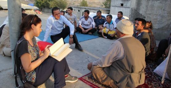 "Akşam çoluğu çocuğu toplayıp Ezidilere gidiyoruz, evde düşün düşün duramıyor insan" diyen dolmuş şoförü, "Traş yapıyoruz para vermek istiyorlar, öyle ayıp olur mu?" diyen berber, "Çikolata, bisküvi, hanımın evde yaptığı kek, poğaça yapıp çadırlara gidiyoruz" diyen bakkal...