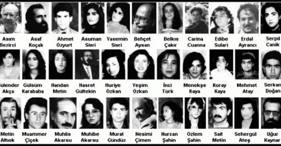 Çoğunluğu Alevi 33 yazar ve ozan ile iki otel çalışanı yanarak ya da dumandan boğularak hayatlarını kaybetti.