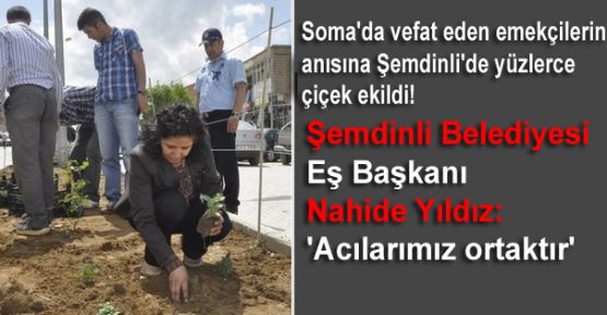 Çalışmaları yerinde takip eden Şemdinli Belediye Eş Başkanı Nahide Yıldız; "Türkiye'yi yasa boğan Manisa - Soma'da göçük altında kalan işçi arkadaşlarımız var, vefat eden arkadaşlarımıza Allah'tan rahmet yakınlarına sabır diliyorum. Acılarımız ortaktır. Bu çiçekleri ekerken her birini vefat eden bir arkadaşımızın anısına ekiyoruz. Onların yanında olduğumuzu ve acılarını paylaştığımızı belirtmek istiyoruz" dedi.