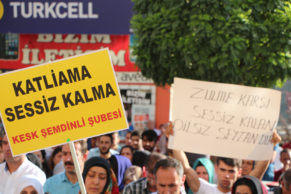 Kitle adına açıklama yapan Demokratik Bölgeler Partisi (DBP) Şemdinli İlçe Eşbaşkanı Davut Evin, bu katliamdan birinci derecede IŞİD'i destekleyip büyüten AKP Hükümeti sorumludur dedi.