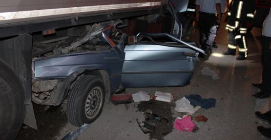 Kazada otomobilin tamamı dorsenin altına girerken, 2 kişi öldü, bir kişi yaralandı.