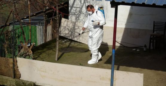 Öte yandan, mahallede şarbon şüphesi üzerine İlçe Gıda, Tarım ve Hayvancılık Müdürlüğü ve İlçe Sağlık Müdürlüğü ekiplerince başlatılan çalışmalar sürerken, ineğin kesildiği yer ve hayatını kaybeden Fatma Çakır’ın oturduğu ev ile çevresi de ilaçlandı. (TRABZON/DHA)