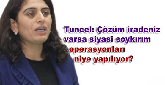 "AKP'nin seçim öncesi çözümün arkasındayız diyerek süreci oyalayaçak mı?" diyerek sürecin gidişatı konusundaki muğlaklığa dikkat çeken Tuncel, "Bundan vazgeçip söylenen mutabakata varılan konuların hayata geçirilmesi gerekiyor. AKP, 6-8 Ekim direnişini gerekçe göstererek süreci durdurmuştur. Şimdi aslında halka iki ay kaybettirdi. Yeniden bu tartışmalar başlayacak. Müzakerelerin resmi olarak başlaması gerekecek heyet gittiğinde. Bunun olması gerekiyor ama AKP'nin her sorunu çözmüş, sorun yokmuş gibi yaklaşımı kandırmacadır. Madem ki müzakere sürecinde iradeniz var, neden siyasi soykırım operasyonları yapıyorsunuz? Neden demokratik siyasetin önü açılmıyor? Niye bunun önü açılmıyor, Rojava politikası değiştirilmiyor?" diye sorarak, AKP'nin öncelikle bu sorulara yanıt vermesi gerektiğinin altını çizdi.