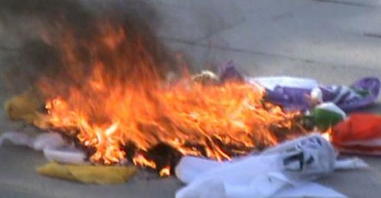 HDP’liler üzerine slogan atarak yürümeye başlayan grup HDP bayrakları indirirken, HDP broşürlerini ve bayraklarını yaktı.