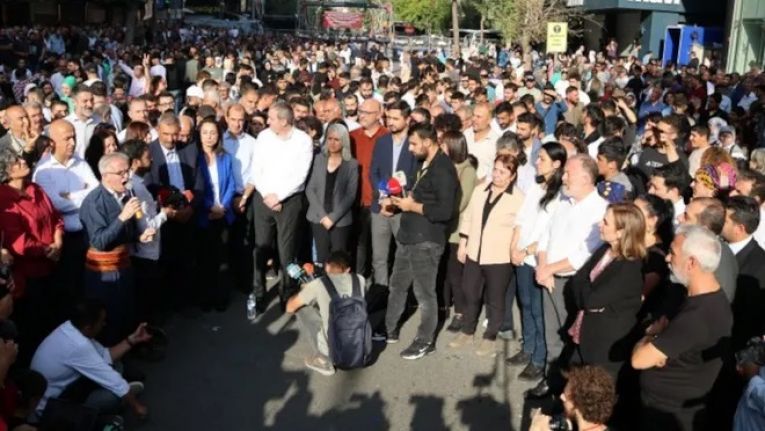 Diyarbakır Valiliği; yasakladığı 'özgürlük mitingi' için bir araya gelenlerden 6'sının gözaltına alındığını duyurdu, 'suç teşkil eden ifadeler kullandıkları' gerekçesiyle DEM Partili milletvekilleri hakkında suç duyurusunda bulundu.
