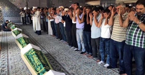 Okunan duaların ardından kazada yaşamını yitiren Şengül Akman (50), Çiçek Çapat (39), Bahar Çağatay (15), Bedran Çağatay (54), Nildanur Akman (13), Faruk Boz (38) ve Gülistan Boz'un (18) cenazeleri defin edilmek üzere Kızıltepe, Yeşilli ve Ömerli ilçelerine gönderildi.