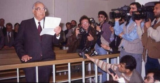 Fotoğraf 23 Ocak 1995 günü çekilmiş. Yaşar Kemal Beşiktaş Adliyesi'nde mahkeme salonunda. Der Spiegel dergisine yazdığı “Yalanlar Seferi” başlıklı yazısı nedeniyle yargılanıyor. Dava Devlet Güvenlik Mahkemesi’nde (DGM) görülüyor. Savunmasını verirken onu izleyen gazetecilerin arasında Metih Göktepe de var. Teybini olabildiğine uzatmış, dikkatle bakıyor Yaşar Kemal’e; söylediği her sözün altına imza atacakmışçasına.