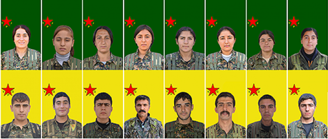 YPG Basın Merkezi, Kobanê’nin güneyinde Hasekê’ye kadar uzun bir sahada çetelerin saldırılarına karşı direniş destanıyla karşılık veren ve DAIŞ çetelerinin amaçlarına ulaşmasına izin vermeden boşa çıkaran 16 savaşçısının kimlik bilgilerini açıkladı.