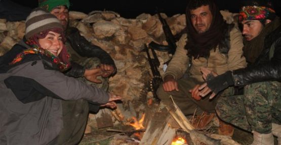 Havanın soğukluğuna aldırış etmeyen bu savaşçılar, her anı Kobanê zaferinin büyük coşkusu ile yaşıyorlar. / ANHA