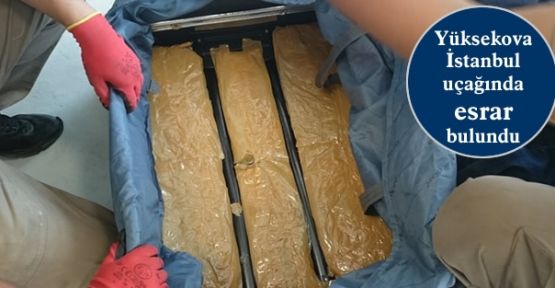 Hakkari’nin Yüksekova ilçesinde Yüksekova-İstanbul seferini yapan uçağın bagajında 6 kilo 760 gram esrar ele geçirildi.