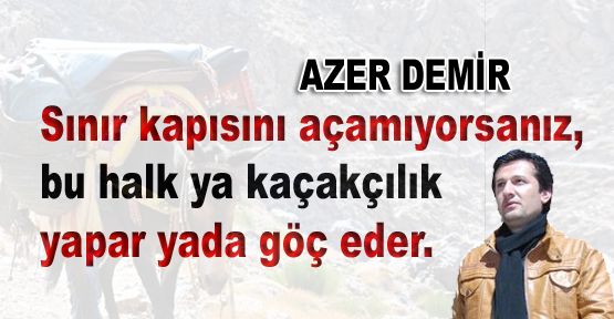 Bölgenin herhangi bir ekonomi getirisi yoksa ve sizde yasal yollarla işlenebilecek bir sınır kapısı açamıyorsanız, bu halk ya kaçakçılık yapar yada göç eder.