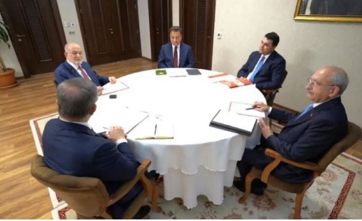 İYİ Parti lideri Meral Akşener'in önceki gün Altılı Masa'daki 5 liderin CHP Genel Başkanı Kemal Kılıçdaroğlu'nun ortak cumhurbaşkanı adayı olması konusunda uzlaştığını, kendi partisinin ise Kılıçdaroğlu'na destek vermeyeceğini açıklamasının ardından Saadet Partisi Genel Başkanı Temel Karamollaoğlu, DEVA Partisi Genel Başkanı Ali Babacan, Gelecek Partisi Genel Başkanı Ahmet Davutoğlu, Demokrat Parti Genel Başkanı Gültekin Uysal ve CHP Genel Başkanı Kemal Kılıçdaroğlu, Saadet Partisi Genel Merkezi'nde bir araya geldi.