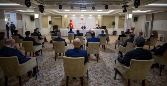 Yaklaşık üç saat süren toplantıda baro başkanları, baroların yapısına ilişkin kamuoyundaki tartışmalarla ilgili görüşlerini paylaştılar. (ANKA)