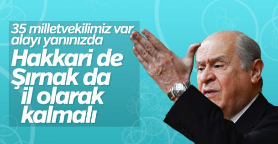 Bahçeli; "35 milletvekilimiz var, alayı yanınızda.. Hakkari ve Şırnak kalmalı.. Başka nereye yapıyorsanız yapın, o sizin bileceğiniz iştir." şeklinde konuştu.