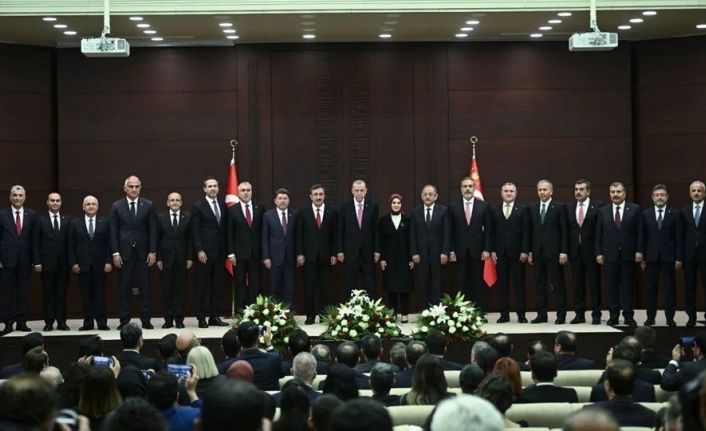 Cumhurbaşkanlığı Hükümet Sistemi'ndeki ilk kabine olan eski kabinedeki bakanlar teşekkür eden Erdoğan'ın açıkladığı yeni kabinede şöyle: