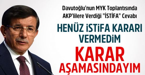 Selvi, dünkü grup toplantısında “Gerekirse makamı elimin tersiyle iterim, sanal şarlatanların oyunlarına izin vermem” sözleriyle Davutoğlu’nun, MYK toplantısında “Sözleriniz bir veda konuşması gibi algılandı. Öyle bir şey var mı?” sorusuna “Ben henüz kararımı vermedim. Karar aşamasındayım. Değerlendiriyorum” cevabını verdiğini yazdı.