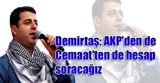 "Cemaat 17 Aralık operasyonlarını temiz toplum/temiz siyaset için yapmadı. Hırsızın yerine geçmek için yaptı" twittini paylaşan Demirtaş, "bundan dolayı AKP tabanının partisinin etrafında kenetlenmesine yol açtı. Yerel ve C.Başkanlığı seçimlerinde sandıkta AKP den hesap sormamızı engellemiş oldu. Böylelikle Cemaat, hırsızı bizzat kendisi korumaya almış oldu" ifadelerini kullandı. Demirtaş, yapılması gerekenlere ilişkin de şunları paylaştı: "Şimdi bize düşen şey ne AKP ne cemaat şiarıyla ikisinden de hesap sormaktır. Ne darbeciden ne de hırsızdan yana taraf olmak zorunda değiliz. İkisi de suç ortağıdır. Biz ikisine de karşı bir yerde tarafız."