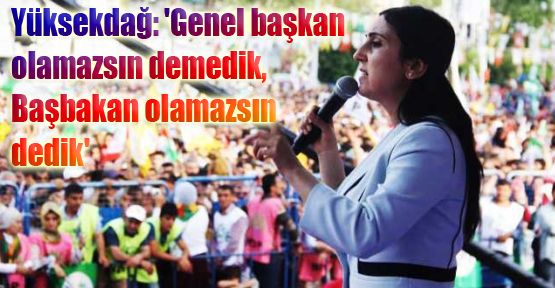 Adana’da partisinin düzenlediği mitinge katılan HDP Eş Genel Başkanı Figen Yüksekdağ bir konuşma yaparak Başbakan Davtoğlu’na yanıt verdi. Yüksekdağ, “Biz sana genel başkan olamazsın demedik ki, sen Başbakan olamazsın dedik. Hala da Başbakan olamadı”dedi.